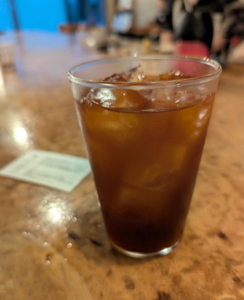 The reason this is a shorter review is that conversation led to an invite to wander on to a local Mukojima drinking establishment, so I only had the one coffee and didn’t get any pictures of the bean list. But I can say the bean list was nice, leaning towards lighter roasts as is typical for newer Third Wave shops. I also appreciated the relatively reasonable pricing – mine was about 800 yen for a healthy sized Aeropress brew. Ken-san uses pourover for hot drinks (looked like Kalita 155 style drippers) and of course espresso based drinks are on the menu.